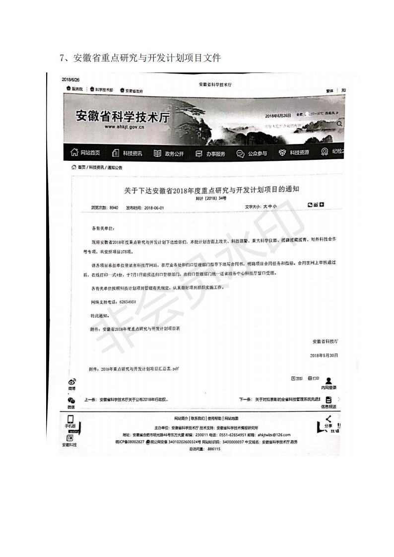 安徽省重點研究與開發計劃項目文件